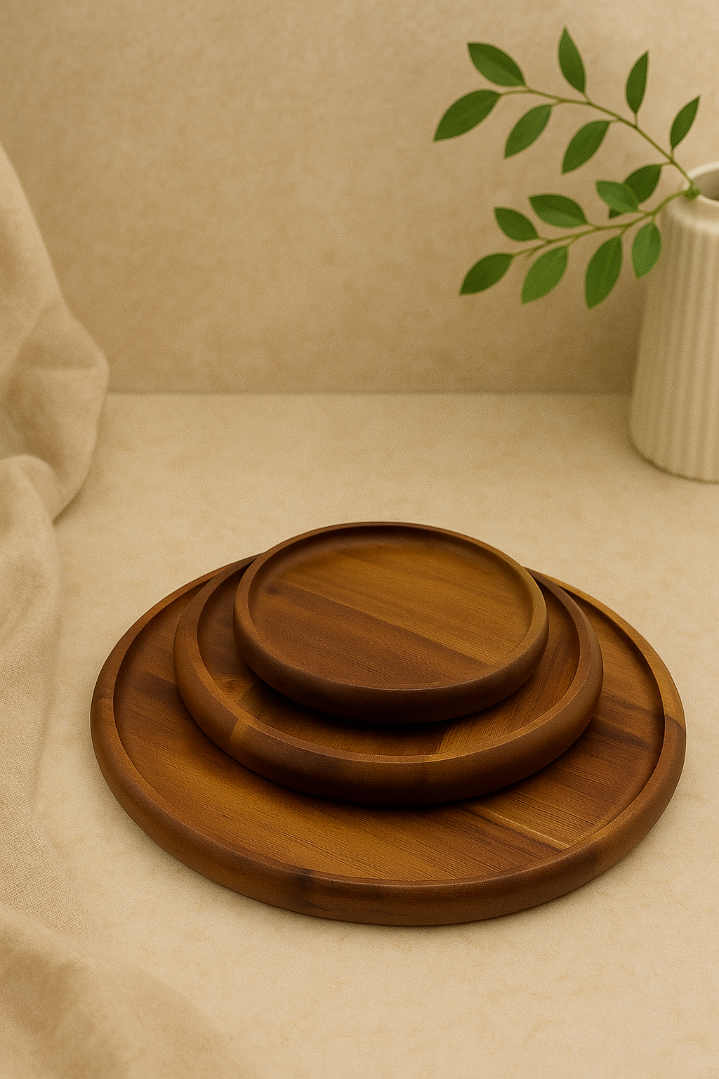 Set de 3 assiettes plates en acacia